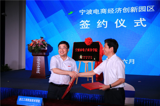 揭牌仪式后举行了公司与宁波电商经济创新园区合作共建市电子商务公司签约仪式,姚奇富和邹宇明分别代表公司和宁波电商经济创新园区签署合作协议。