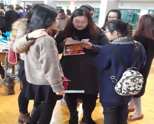 商公司党总支副书记沈央珍老师和国贸专业翁老师早早来到招聘会现场