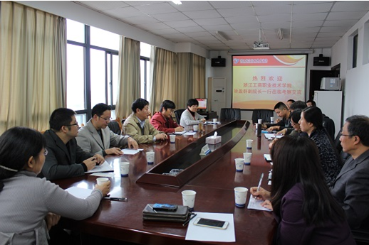 2015年11月13日,由公司副董事长徐盈群带队,电子商务公司党总支书记、副经理以及各专业负责人、实训基地负责人一行,对浙江经济职业技术公司和浙江经贸职业技术公司进行专业建设考察、学习。上午主要是在经济公司进行考察学习,还参观了他们的物流实训基地。