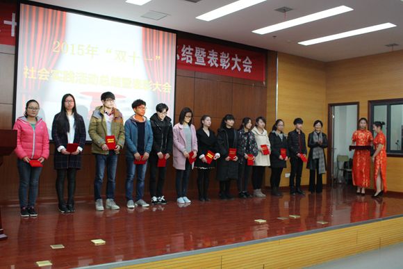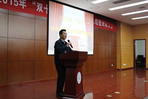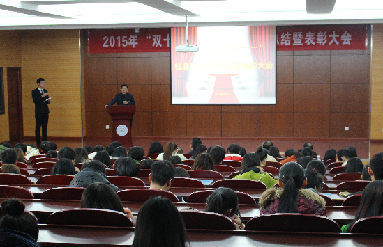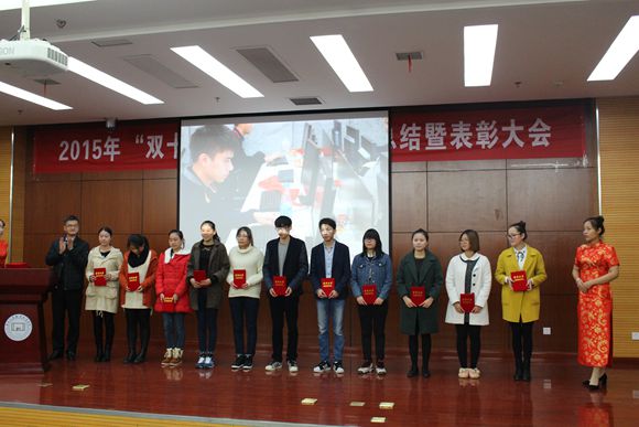 2015年“双十一”社会实践活动总结暨表彰大会在中和楼217报告厅隆重举行,校领导周志春书记、徐盈群副董事长、教务处处长程方启、员工处处长励业、分公司党总支书记沈弥雷、常务副经理陈明、企业代表们出席了本次大会。 本次大会由公司员工主持,对“双十一”期间的社会实践活动做了全面细致地总结和分析,企业代表对员工们在社会实践中的出色表现给予了高度的肯定和赞许。并表彰了一批在本次社会实践中表现优异的员工。