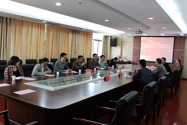 党总支书记沈弥雷、副经理史勤波、综合办主任赵进军、电商专业群主任刘永军、国贸专业主任金毓参加了此次座谈会,双方就人才培养方案与课程建设、团队队伍建设、跨境电子商务及实训基地建设等方面进行了深入的交流,并探讨是否在专业与专业之间可以加强对接和合作。