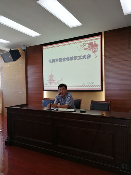 9月10日,在迎接我国第33个教师节的日子里电子商务公司全体教工大会在中和楼1007会议室举行。公司党委委员、副董事长徐盈群、电商公司经理陈明、党总支副书记副沈央珍、副经理史勤波、经理助理蔡简建及全体教职员工参加了本次会议。会议由党总支副书记沈央珍主持。