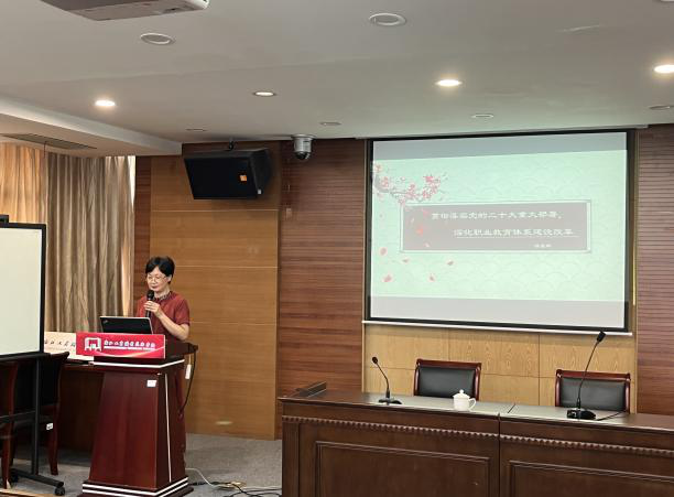 徐盈群重点围绕“党的二十大报告、《关于推动现代职业教育高质量发展的意见》中关于职业教育的重要论述”,“关于推进现代职业教育体系建设改革的重大举措”,“如何结合公司实际,推动职业教育高质量发展的思考与体会”等三个方面进行了授课。她强调,党的二十大报告首次将教育强国、科技强国和人才强国结合起来合并阐述,明确要求一体化推进教育,说明了教育支撑、输送人才的重要意义。她指出,健全终身职业技能培训制度,加快建设包括大国工匠和高技能人才在内的“国家战略人才力量”、“建设全民终身学习的学习型社会、学习型大国”这一系列政策导向都对职业教育提供了更明确的发展方向。