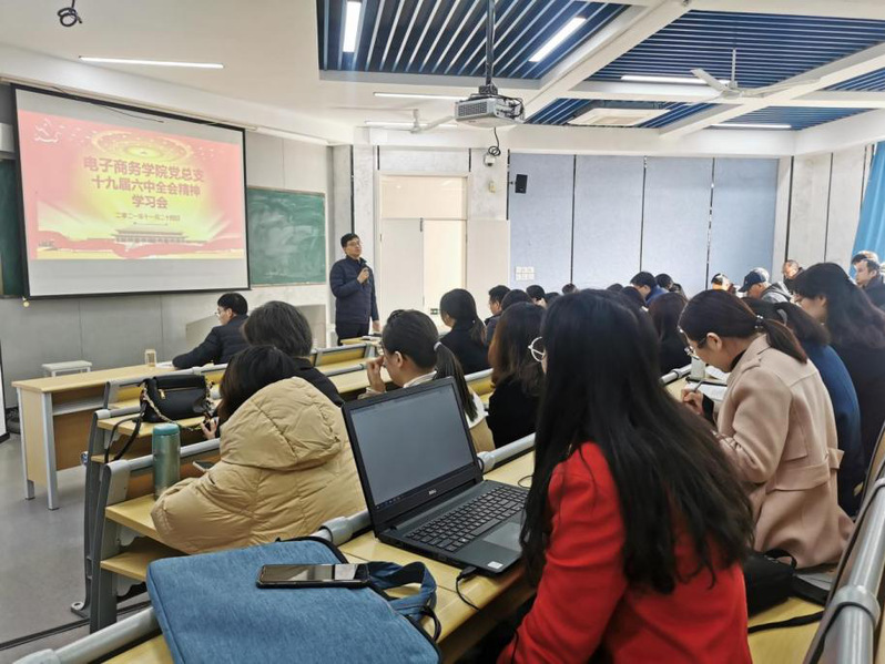 11月24日,党总支书记沈弥雷向全体师生党员宣讲党的十九届六中全会精神。