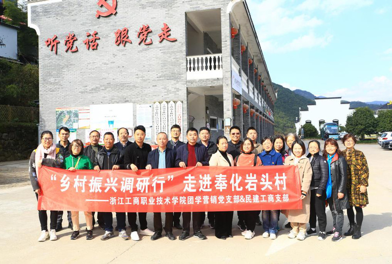 为了进一步丰富党支部主题党日活动,为乡村振兴战略做实事,加强与党外人士的交流与合作,加大党建与专业深度融合,增进团结与友谊,为双高专业建设凝心聚力。11月27日,团学营销党支部联合民建工商支部组织开展了“乡村振兴调研行,走进奉化岩头村”主题党日活动。党总支沈弥雷书记、副书记王浙钟、宁波市品牌升级研究基地、京沪品牌升级研究中心主任吕洪霞、团学营销党支部书记邢伟、团学营销党支部教师党员与民建工商支部成员,共计18人参与了本次主题党日活动。