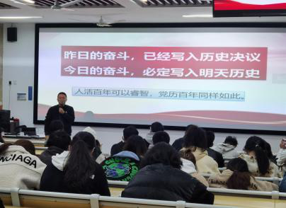 12月22日下午,团学营销党支部书记邢伟在思齐楼21C3针对大二大三班级团支书、员工干部进行了十九届六中全会精神宣讲。本次会议是以十九届六中全会及3.6万字的《中共中央关于党的百年奋斗重大成就和历史经验的决议》内容为基础,对电子商务公司新时代青年开展的思想政治教育课。