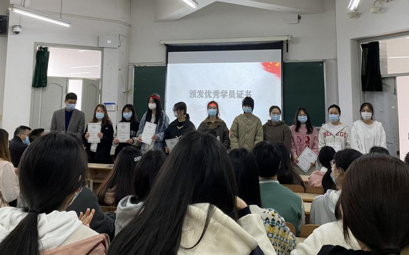 会上,首先公布了十四期党校115名结业同学名单,10名同学荣获优秀学员称号。随后,由第十四期党校优秀学员代表国贸2121朱莹莹和第十五期党校新学员代表国商2162吴翟上台发言。最后,全体学员奏唱国际歌,公司党总支书记沈弥雷宣布电子商务公司第十四期党校结业典礼落幕,第十五期党校开班。并对新一期的学员提出期望,要求每位学员不仅仅在身份上靠近党,更要精神上靠近党,以党员标准严于律己,牢记初心使命,砥砺前行。