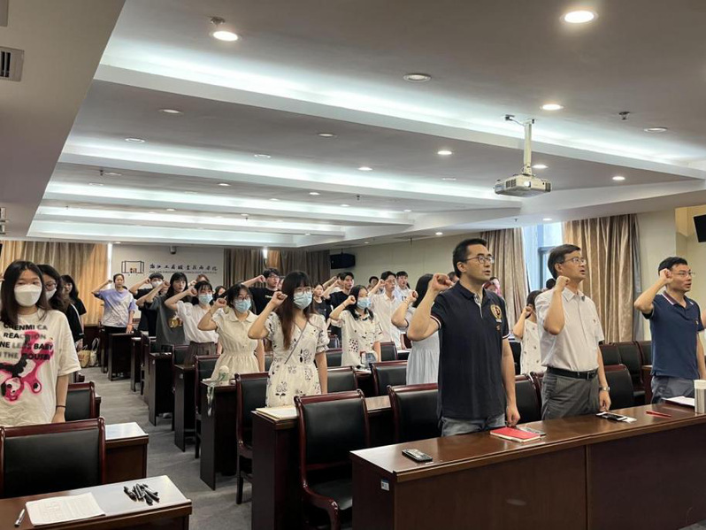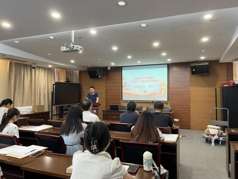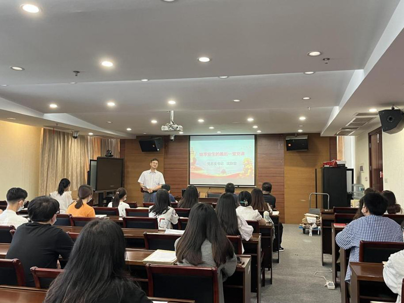 会议伊始,党总支书记沈弥雷老师为毕业生党员上了最后一堂党课。课上,他教导员工党员们人生是一场马拉松,员工生涯虽然结束了,但是学习永无止境。在人生不同阶段,要有坚定的信念,当现实和理想有冲突的时候记得听听自己内心的声音。要敬畏自己党员的身份,也要学会感恩社会、时代、父母、老师、公司。