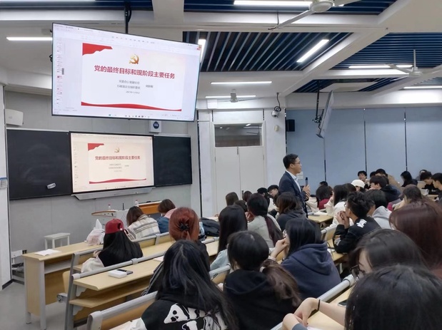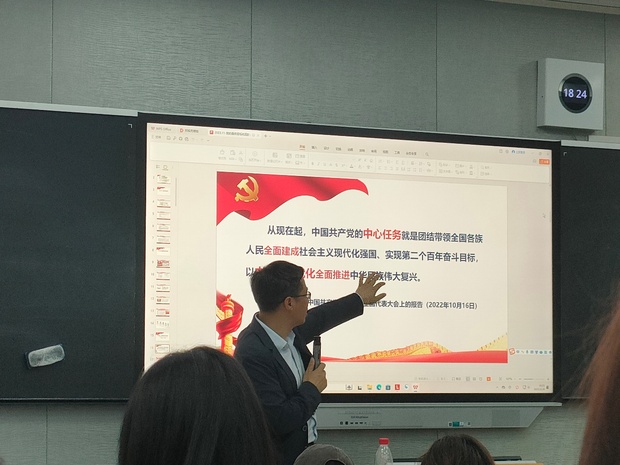 刘老师在讲第三部分党在现阶段的主要任务时,向我们着重讲了党的二十大报告,其中讲述了中国共产党的中心任务就是团结带领全国各族人民全面建成社会主义现代化强国。这份报告提示了同学们应该要团结一致,迎接党带领大家所期望的美好未来。