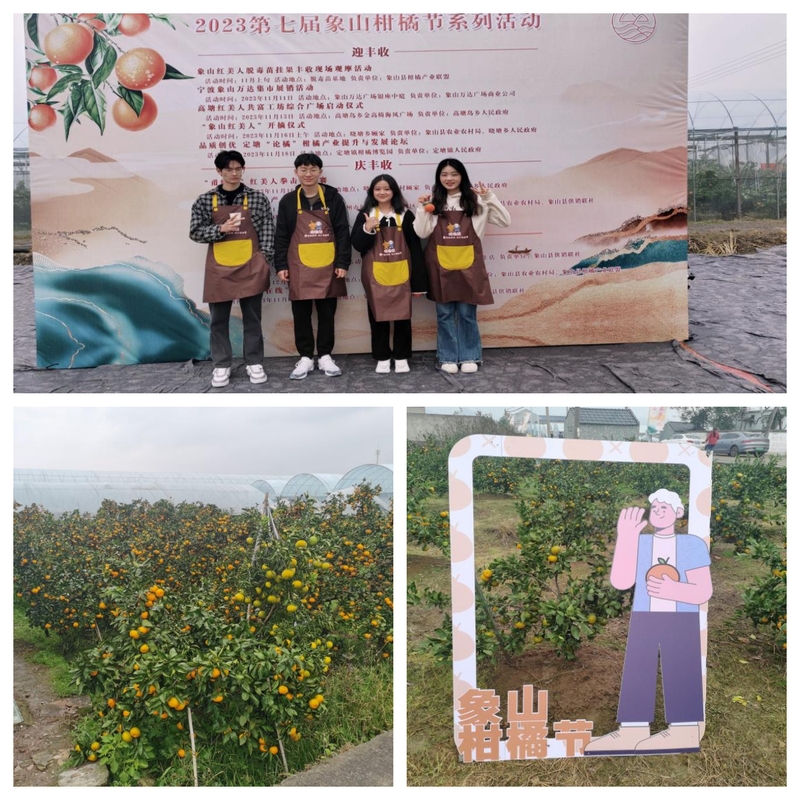 品牌赋能开摘节,产教融合奔共富。近日宁波市品牌建设与创新升级研究基地受邀于象山县晓塘乡“晓橘嫂”共富工坊,参与第七届“象山红美人”开摘节。公司派出永利yl23411官网的黄馨宇、杨柳、边旭威和陈何凯参与了其中的直播带货活动,助力“晓橘嫂”携手奔共富。
