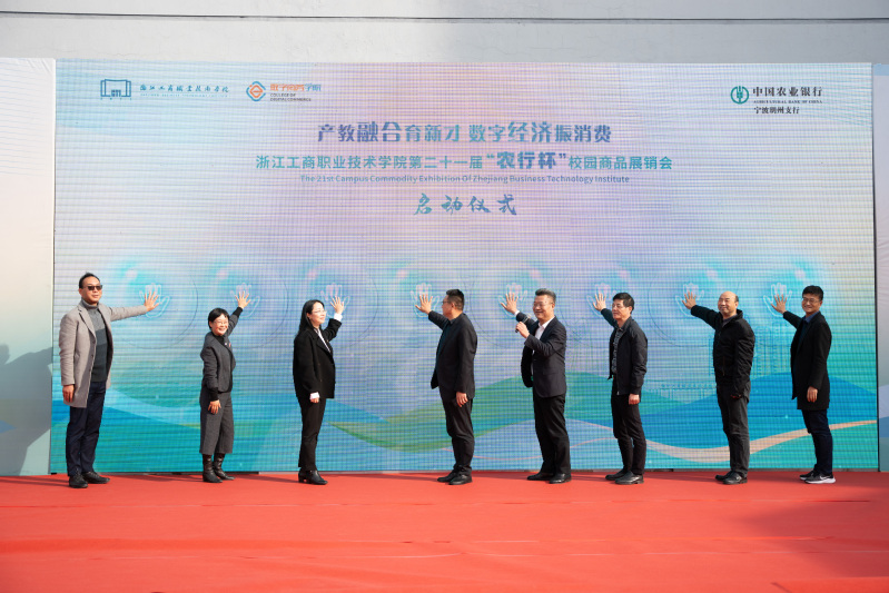 2023年12月6日—8日,公司第二十一届校园商品展销会顺利举办。本次校园商品展销会由浙东电子商务产教联盟、全国跨境电商产教联盟、宁波电子商务公司、宁波市直播产业公司、教务处、创业公司、学工部(员工处)、团委主办,永利yl23411官网承办,中国农业银行股份有限公司宁波明州支行、宣传部、计划财务处、后勤服务处(保卫处)、宁波华英工贸有限公司等协办,以“产教融合育新才,数字经济振消费”为主题,共设立161个摊位,分设商贸风情、精品美食、专业实践、品牌展销四大区域。6日下午,宁波市商务局电子商务处处长涂晓锦,海曙区农业农村局党委委员、副局长黄伟,中国农业银行明州支行党委委员、副行长吴科晶,董事长周志春,党委副书记俞位增,党委委员、副董事长徐盈群,以及相关职能部门负责人、各分院负责人等出席了展销会开幕式。