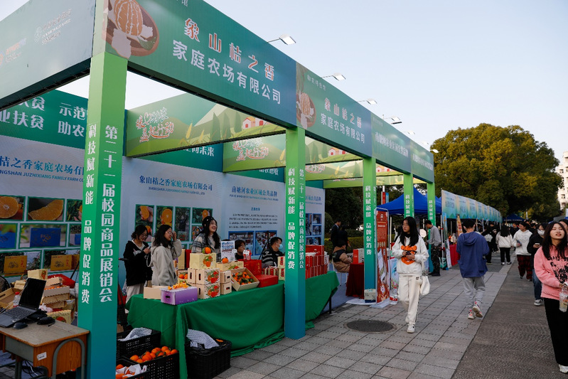 展销会也吸引了校外品牌企业一起参与,品牌展销馆里的“晓橘嫂”红美人、南塘河农业区域公共品牌以及江北慈城年糕摊位里不仅销售火爆,更有不少在校员工帮忙打理,员工经过这样的产教融合实践活动切实感受到用专业知识为乡村振兴助力的魅力。