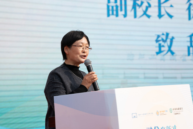 开幕式上,徐盈群作为商品展销会的主要发起者之一致辞。她总结了商品展销会始终坚守初心,通过这一平台坚持人才培养和产教融合的目标,指出随着多年来与时俱进、不断创新,展销会已然成了老员工创业之路的启航地、专业知识的启蒙地、职业素养的检验地,表示在新形势数字经济的背景下,公司作为培养商科人才的高校,将继续在创新育人模式,打造专业服务产业的窗口,推动线上线下销售齐头并进等方面做出积极探索。