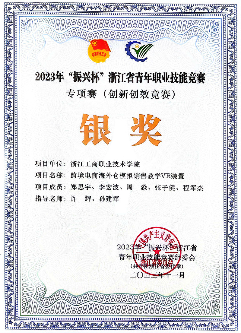 近日,2023年“振兴杯”浙江省青年职业技能竞赛落下帷幕,公司推送项目“跨境电商海外仓模拟销售教学VR装置”(指导教师许辉、孙建军)从众多优秀作品中脱颖而出,收获银奖,创公司参赛以来历史最好成绩。