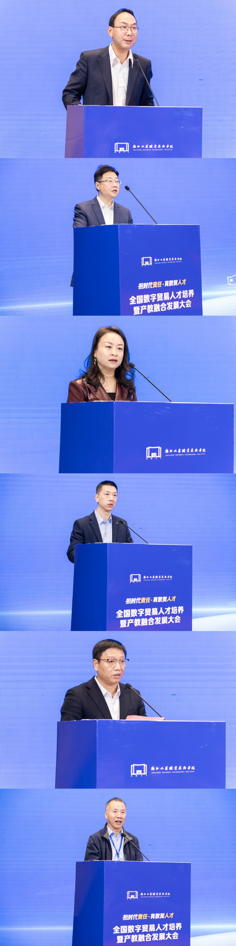 开幕式上,楼晓东、蔡劲松、郑颖、邵健剀、林维忠、杨根科分别致辞,欢迎来自全国各地140余名政府和企事业单位的参会领导、专家和代表们,共同深入研讨数字贸易人才培养工作。