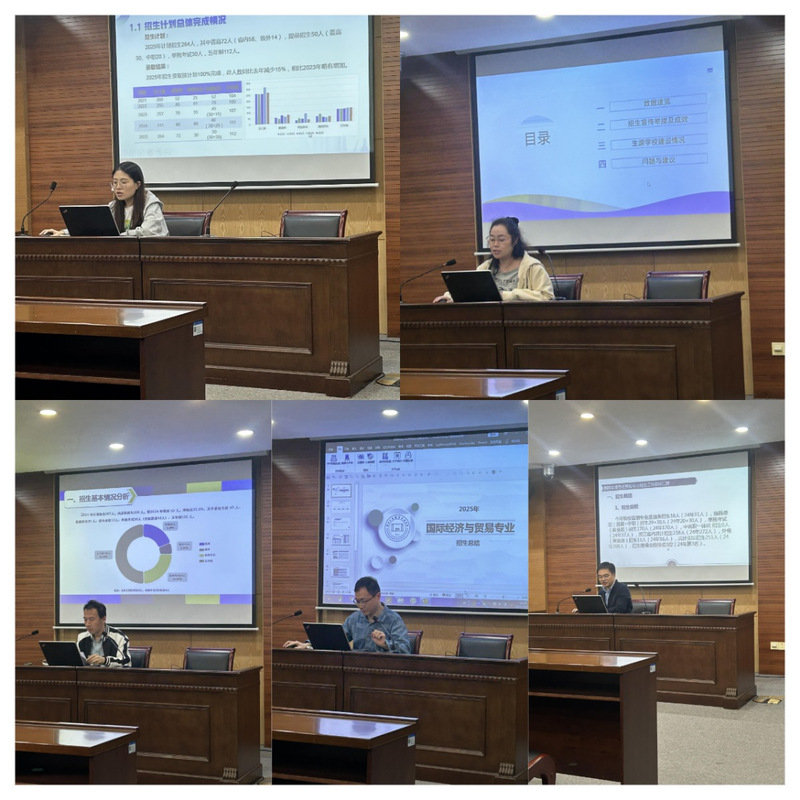 首先,公司电子商务、国际经济与贸易、跨境电子商务、商务数据分析与应用和市场营销专业的五位专业主任分别汇报了2025年各专业招生工作基本情况,重点围绕今年招生过程中的主要特色做法、宣传手段、生源校建设情况、存在的问题和下一步对策措施进行了总结。今年永利yl23411官网共有五个专业开展招生工作,计划招生1033人,实际录取1033人,12人未报到,报到率为98.84%。